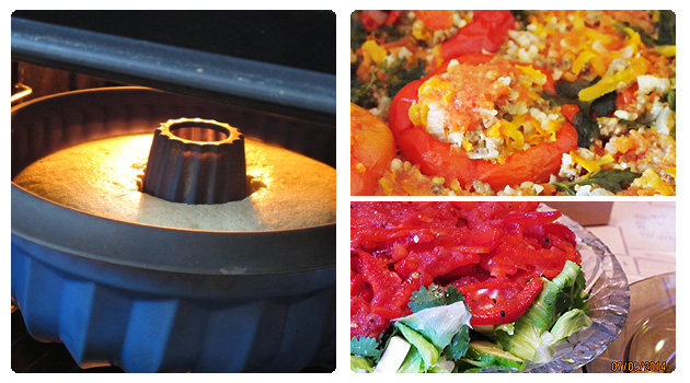 Салатик с овощами и фетой, фаршированные перцы и кекс.