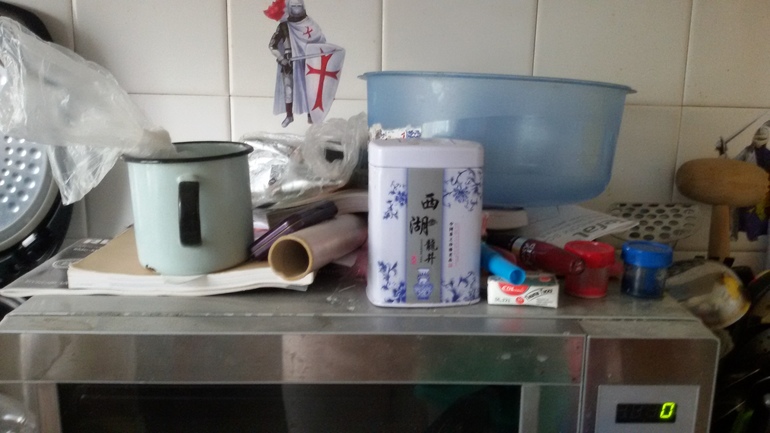 в нашей комнате три: на подлокотнике дивана, около аквариума и огромный на столе.