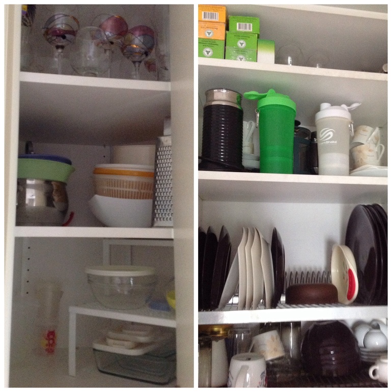 Шкафы полупустые, поэтому чисто))! Не успели обрасти еще большим количеством вещей.. Посуды мало.. И сегодня я впервые этому порадовалась))!