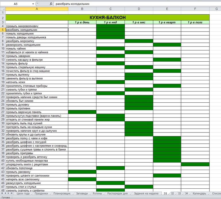 Очень подробно расписана работа по зонам и по периодичности выполнения. Где то скачала. Кому нужно пишите почту, отправлю.