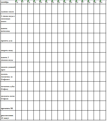 Уже давно я заметила, что про некоторые утренние рутинки я умудряюсь вспомнить лишь к обеду (а могу и вообще о них не вспомнить), поэтому решила завести лист учета, чтобы сразу отмечать, что сделано... Надеюсь, что это может не упустить ни один из пунктов. Начну отмечать с завтрашнего дня.