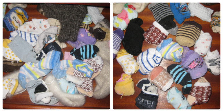 Разобралась в детских носках, каждый носочек нашел свою пару)
