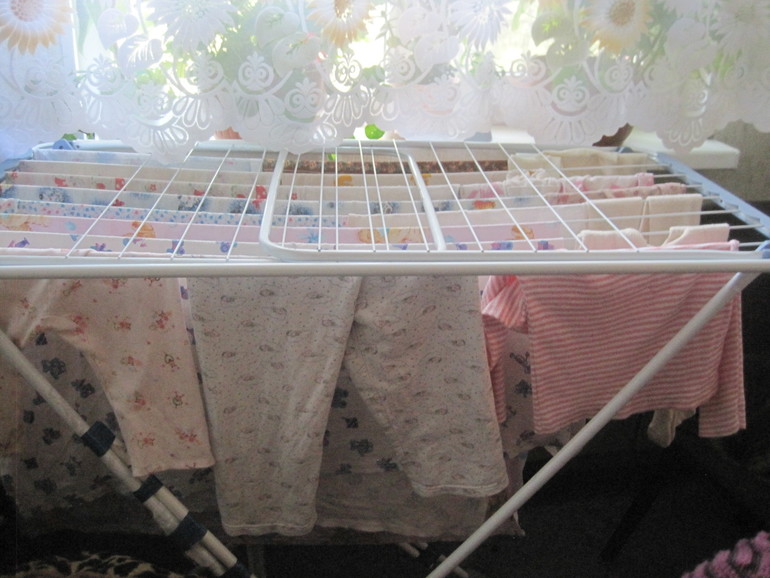 17.00 снимаю высохшее белье, вешаю часть белья спасенного из машинки.