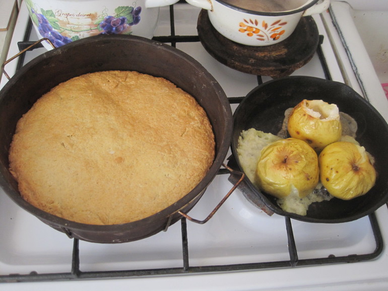 После прогулки ставлю печься яблоки и овсяное печенье на рассоле. С сахаром яблочко для Лизы, без сахара для бабушки, больной диабетом. Бабушка тем временем развлекает ребенка. Я даже успеваю попить чаю.![]()