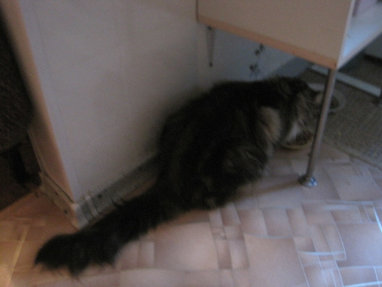 Кашка для ребенка разведена, остывает, кормлю кошку![]()