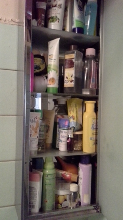 В ванной выбросила все лишнее из шкафчика.