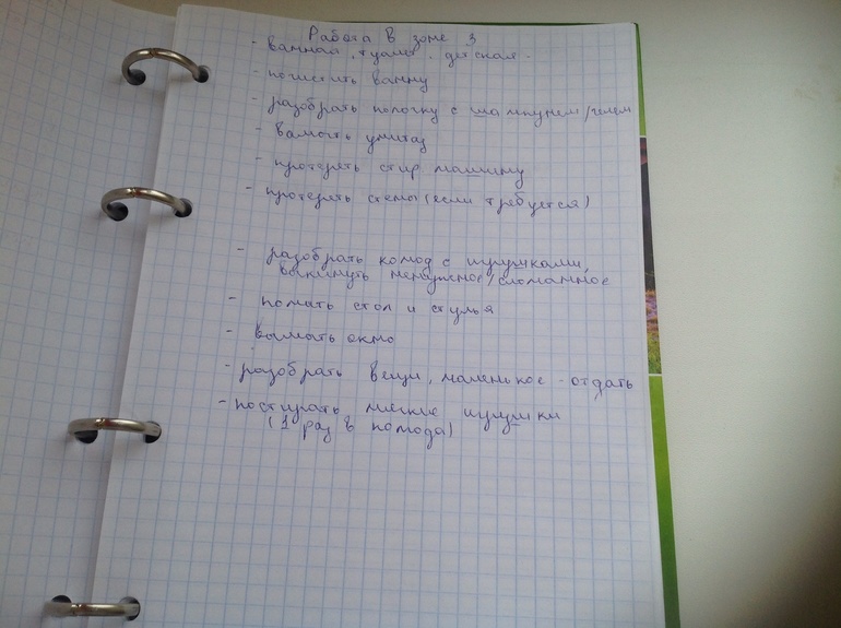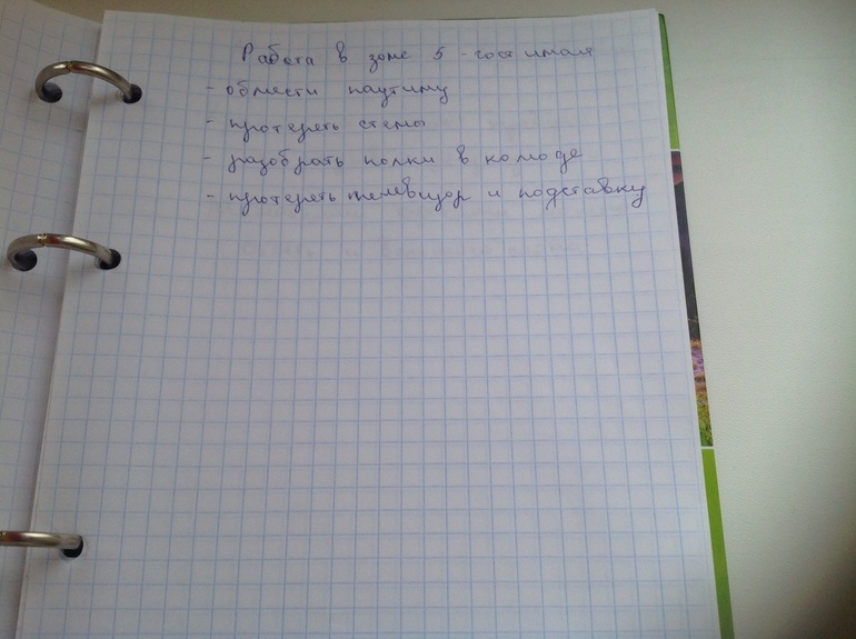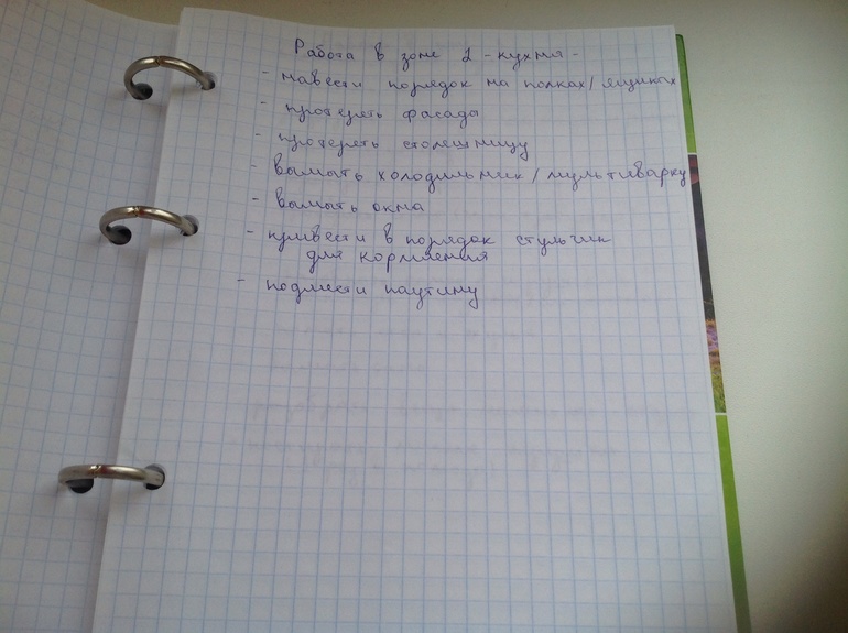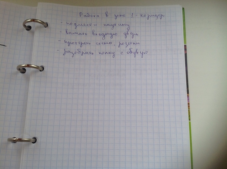 Расписала работу в зонах. Мы пока обживаемся в новой квартире, вещей и мебели немного, поэтому и работы мало)))