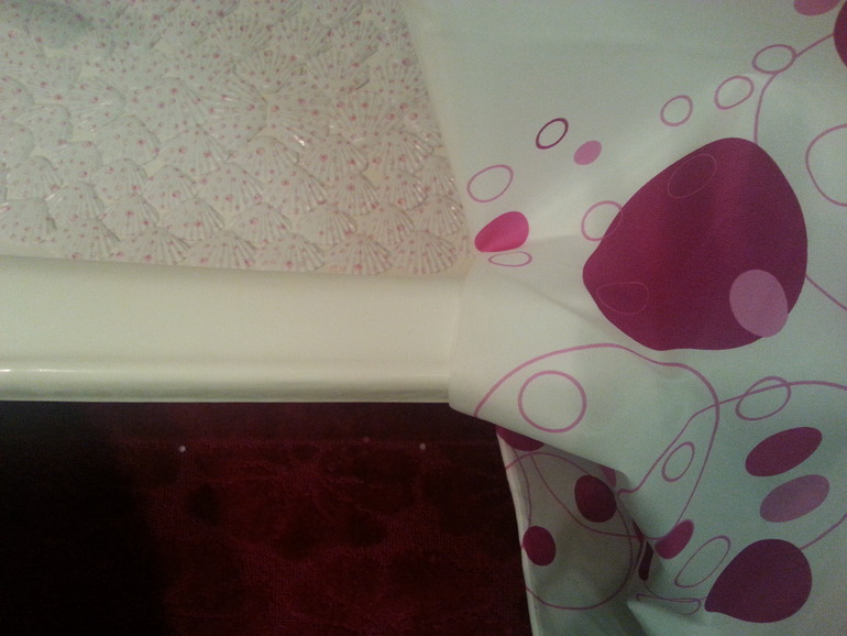 как же меня достал этот коврик...вечно скатывался и так и норовился прилипнуть к пяткам ...рррррр и шторка уже стала пропускать влагу.