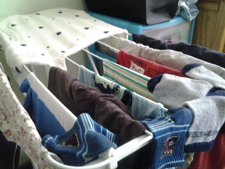 и повесила сушиться детскую одежду и свою, которая требовала ручной стирки
