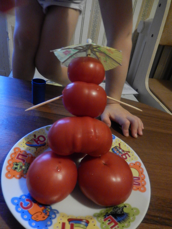 П.С. А в выходные мы делали вот такого помидорного человечка. Было весело, особенно когда он падал!