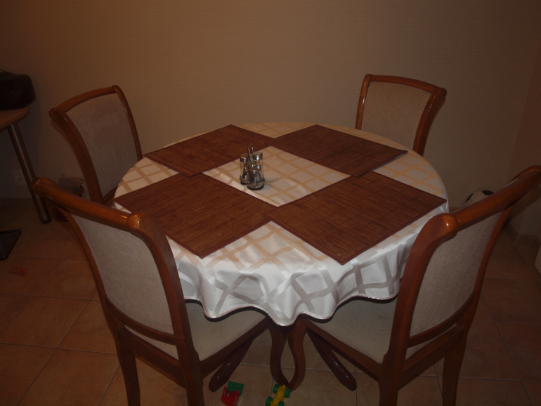 вечером полетала в кухне, вымыла плиту хорошенько, потерла ручки шкафов и протерла водой с доместосом фасады. Кстати, моющее для них я развожу в раковине, заодно и ее отмыла. Еще поменяла скатерть. ДО забыла вставить, так что только после