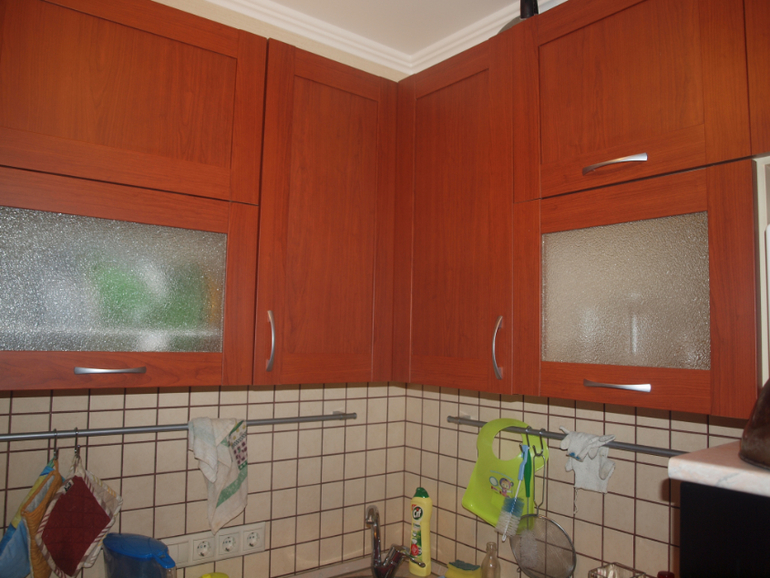вот поближе фото, с углов наверху смахнула пыль и наверху шкафы помыла