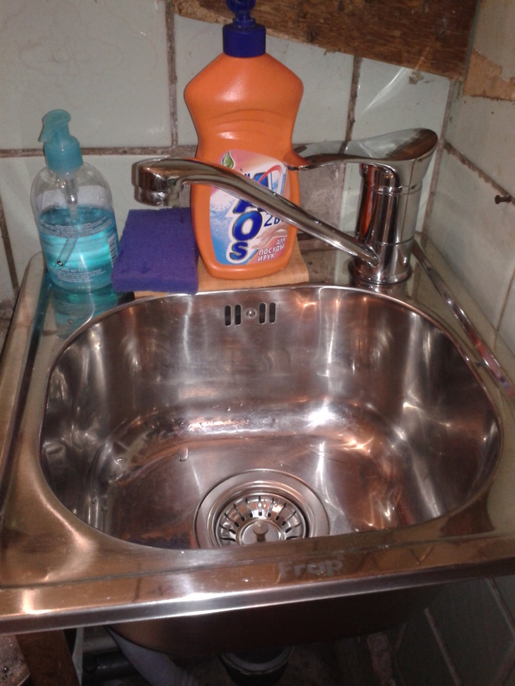 дома ремонт.раковина для посуды у меня пока что в ванной.Раковина на кухне выглядит пока только так