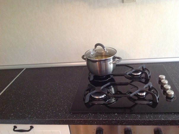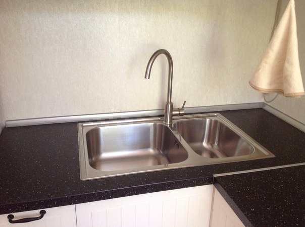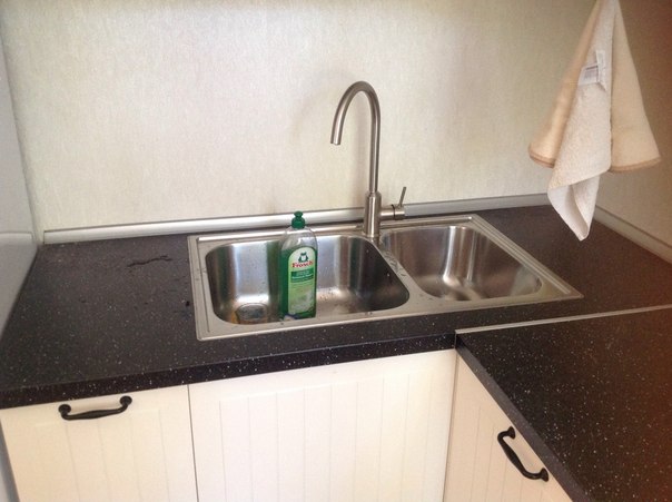 Столешница, фотографировала сразу после того, как готовила обед, так что, раковину протереть и не успела))