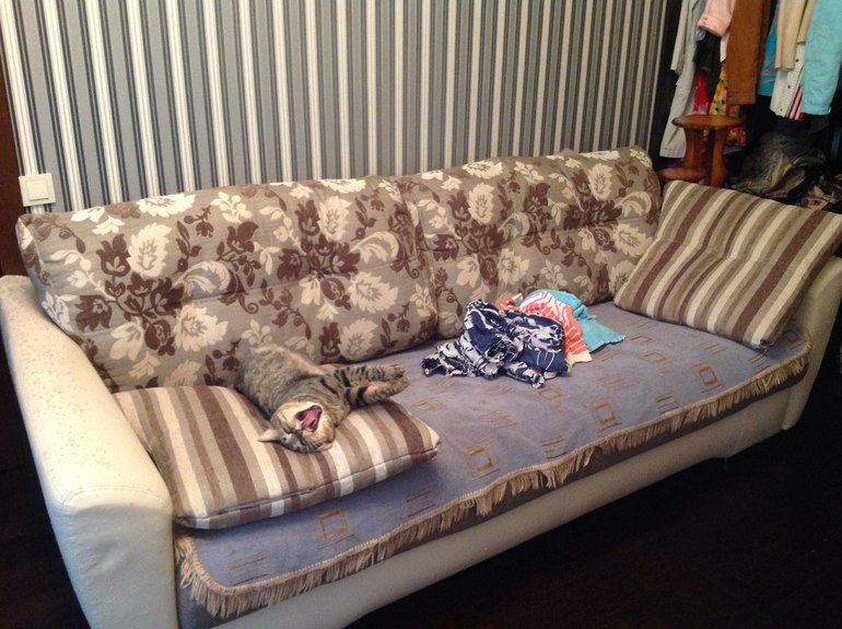 Тут я решила погладить бельё 15 минут, а на диване вот такой зверь)))