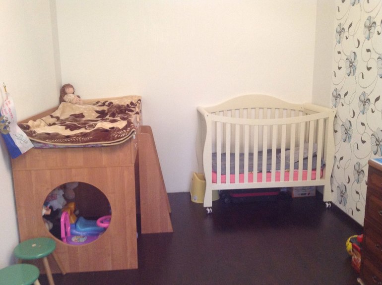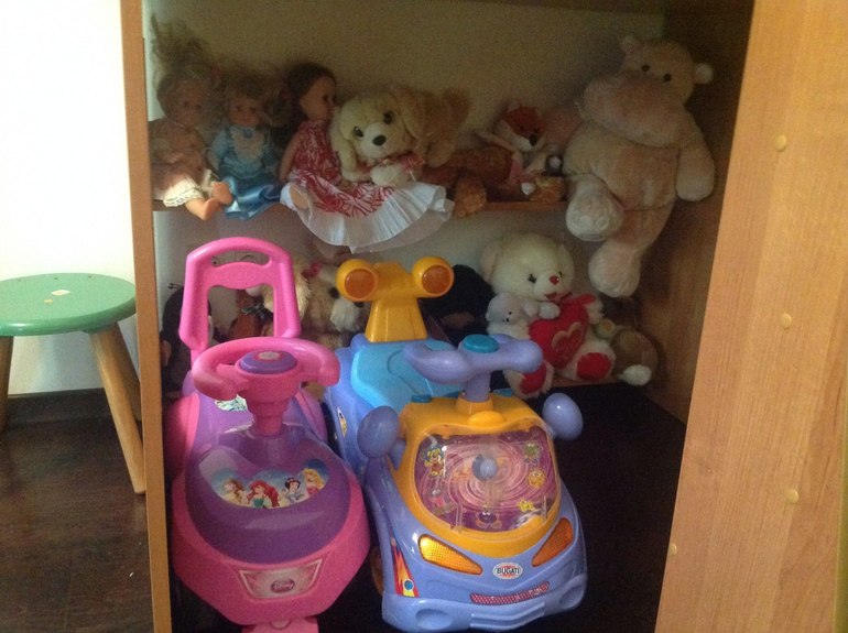 Потом, я поменяла постельное бельё в детских кроватках, заправила их кроватки, и так выглядит порядок в детской: