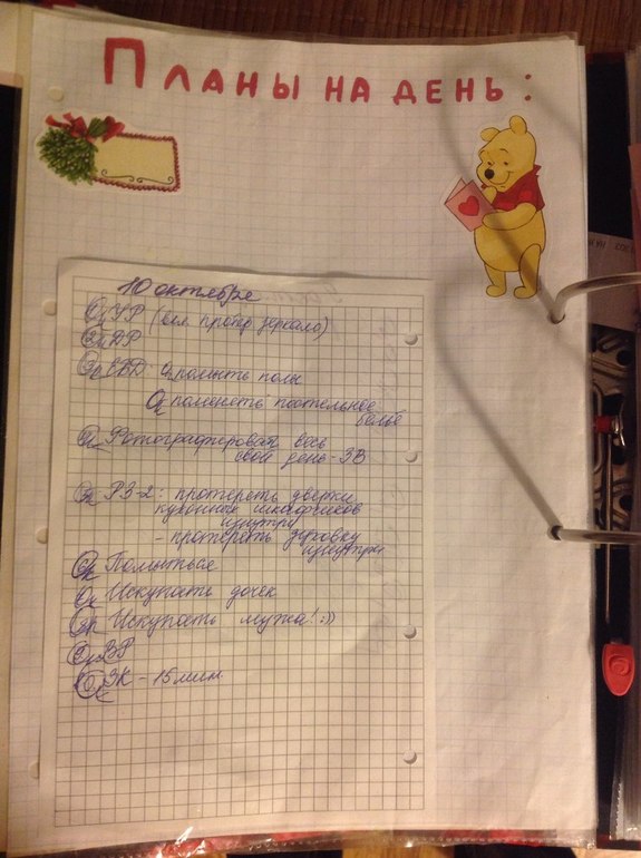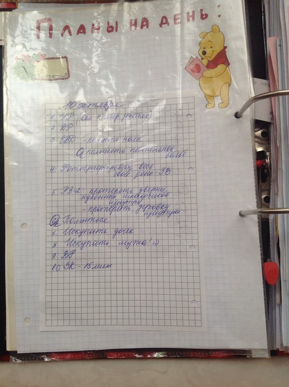 А это мой план на день: