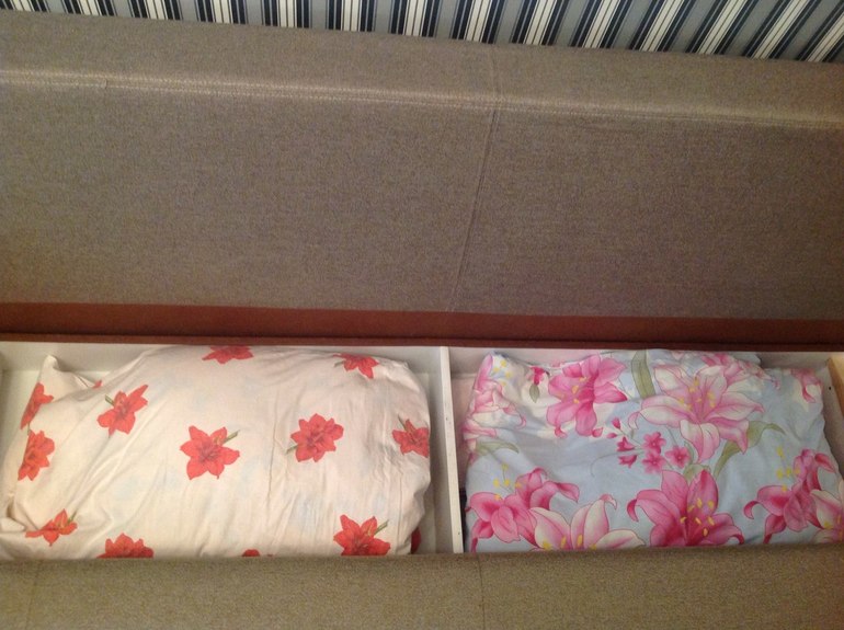 Поменяла взрослое постельное бельё, положила его в диванные ящики, предварительно их почистив