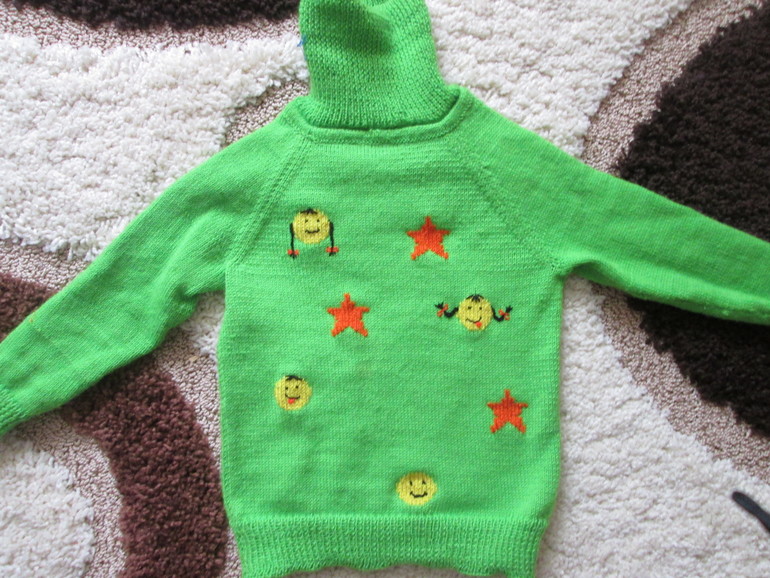 Свитер нам связала бабушка на вязальной машине - мое только украшательство.