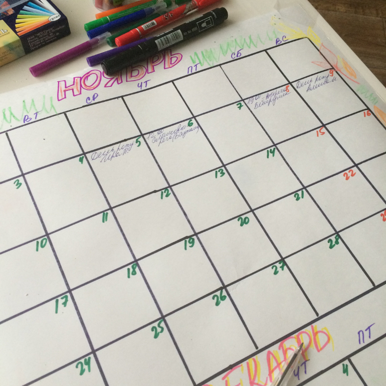 Календарь сделала, хоть и считаю его вещью бесполезной. А точнее, выполнять приддется двойную работу, так как всегда забиваю в телефон, так же не нужно ничего расчерчивать и создавать, все уже есть, очень удобно.