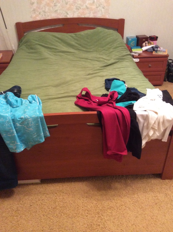 Сегодня же у нас задание про уборку одежды, так вот, моя квартира подтверждает поговорку, что лучший шкаф для одежды-это стул!))) кровать в моем случае)))