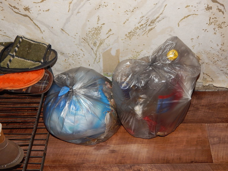 11.40 Собираю весь мусор и складываю в пакеты.