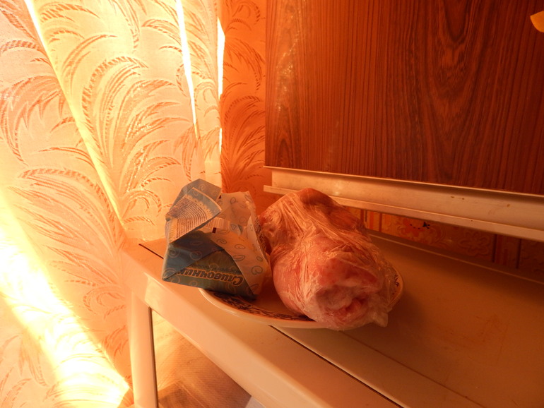 8.50 Достаю мясо и масло из морозилки, для приготовления обеда и ужина.