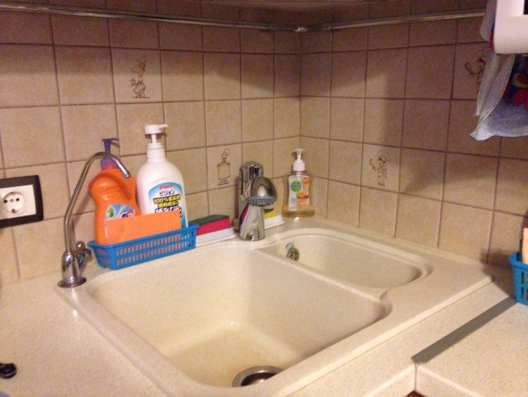 1 - Раковина в полном порядке. Сегодня весь день мыла посуду и сразу вытирала. Вечером помыла ее губкой с средством для мытья посуды и вытерла полотенцем.