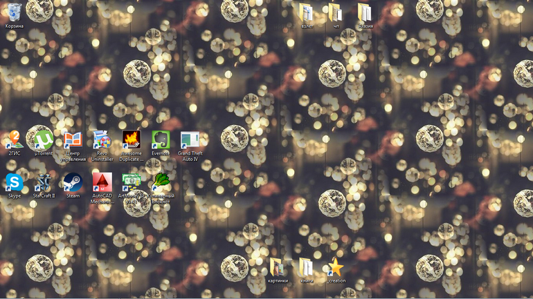 Естественно, там должен быть порядок. И я понимаю, что его сложно соблюдать. Я для себя придумала вот какой способ: я отследила, что я чаще всего скачиваю из инета и оставила на рабочем столе только папки для этих файлов. В итоге у меня есть только ярлыки программ, папки «книги» и «картинки», а также ярлык от папки с рукодельными идеями (она очень большая и хранится на диске D). Сейчас вот ещё три папки с текущими проектами.