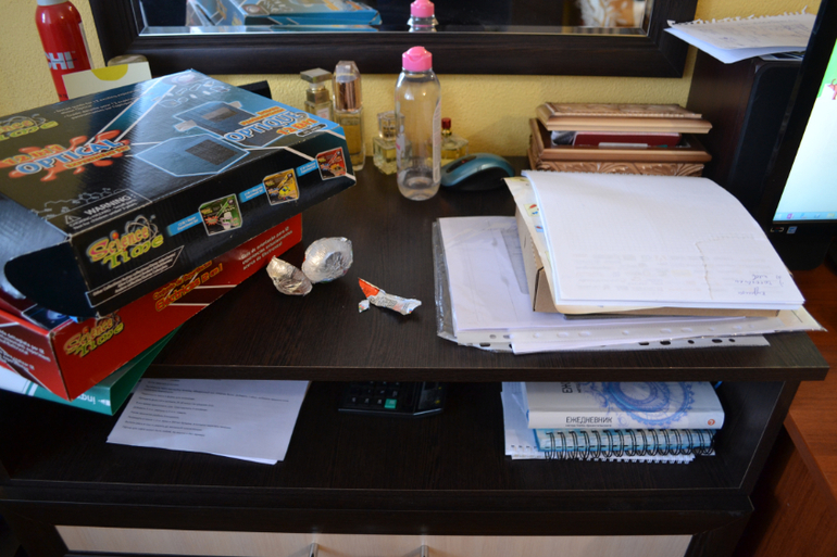 5) И самый страшный мой кошмар среди ХС - стол сына. Это вообще склад в прямом смысле слова. Тут бывает все - начиная от недоеденных яблок и заканчивая карманными деньгами. Все просто в одной общей куче(((( Прибирать его приходится каждый день. Там точно все размножается почкованием, стоит отвернуться. Сейчас там более менее порядок, т.к. недавно приходили гости ))