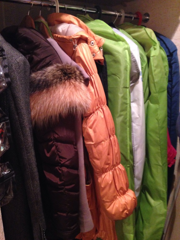 В гардеробной (шкафа у меня нет в коридоре) чуток подкорректировала: убрала в чехлы не сезонную одежду