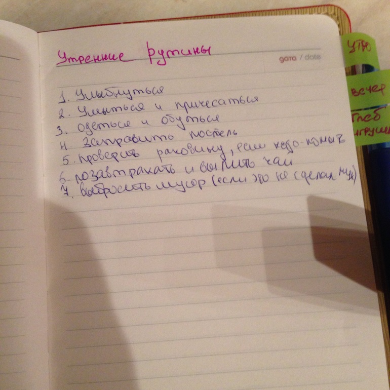 Утренние рутины записала. Места свободного более чем (чтобы дописывать).