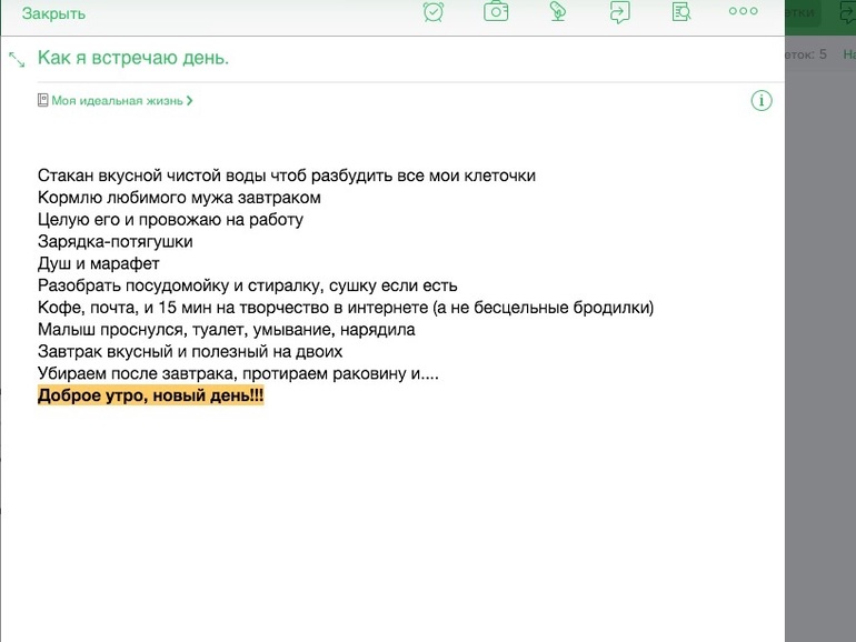 Отчитываемся по заданиямПривет всем кто еще не спит! Главное событие - мой сын 1,5 г, смотрел прошлые 3 дня как я проснувшись бежала приводить себя в порядок, красить глаза и губы, расчёсываться... Сегодня я расчесалась при нем и решила посадить на горшок, взяла на руки, а он показывает мне пальчиком сначала на глазки, а потом на губки. Мол нечего мама халявить иди наводи красоту. Муж пока ничего не замечает (видимо и правда любит меня любой)) но приходя с работы стал больше времени общаться с нами и меньше с телеком по собственной инициативе ( тут видимо работает пока непонятное мне волшебство) . Теперь о заданиях. Кж заполняю в электронном приложении. Список желаний тоже заполняю. Разделила его на личные, для сына, для мужа и для дома.