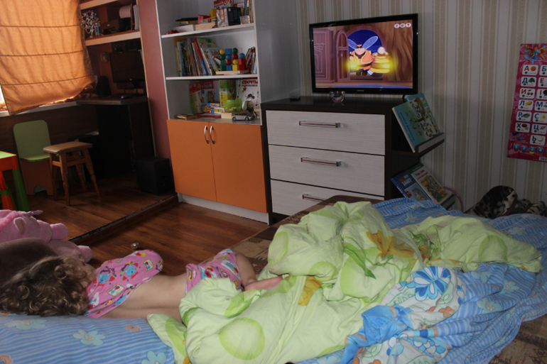 Начинаются утренние рутины, у меня умываться, приводить себя и сан. узел в порядок, у Яси - смотреть Лунтик (это ее любимый мультик, смотрим его каждый день, утром)