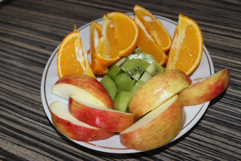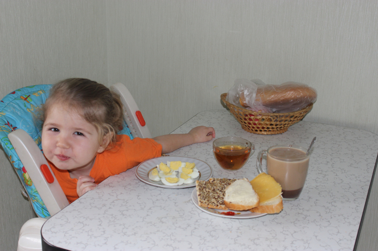 Доча не захотела есть кашу (обычно она завтракает ей), по этому наш завтрак выглядит так: