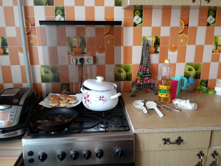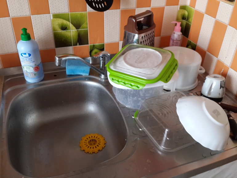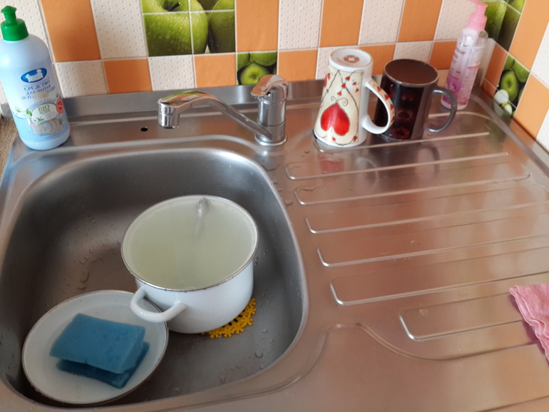 Далее пригововление обеда/ужина, мытье посуды в процессе