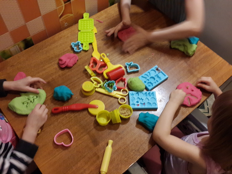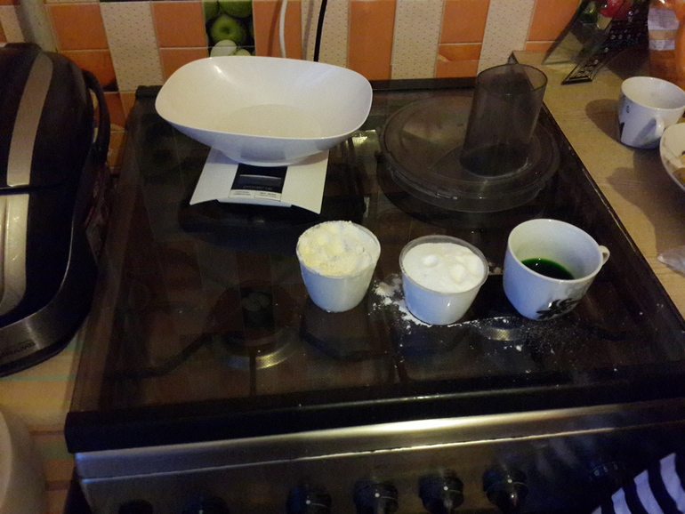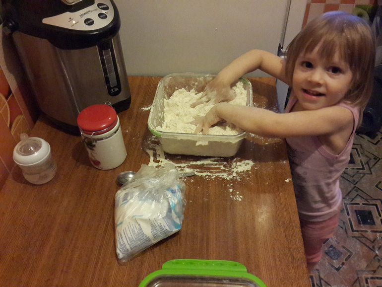 К 19.00 пришел старший сын, все поужинали. Посмотрели мультики. Решили сделать соленое тесто, а то красители для яиц глаза мозолят