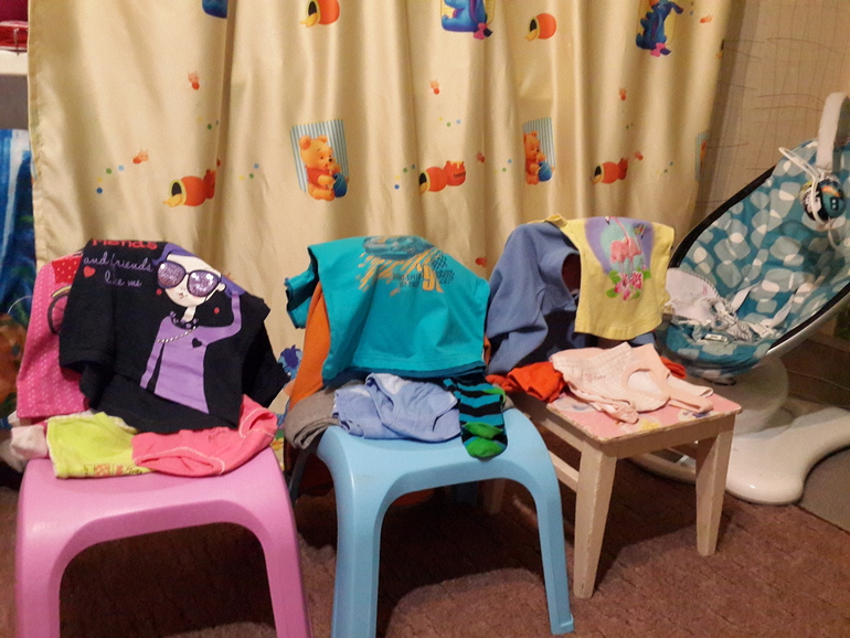 Пришли домой, забыла сфоткать кучу одежды на полу)) Сразу все захотели на ручки...