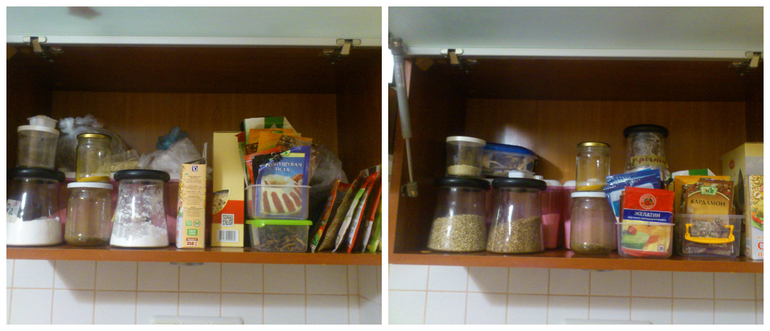 5-минутку по спасению от хлама посвятила ревизии и упорядочиванию круп и специй в кухонном ящичке. Как раз сырники жарились и было свободное время.