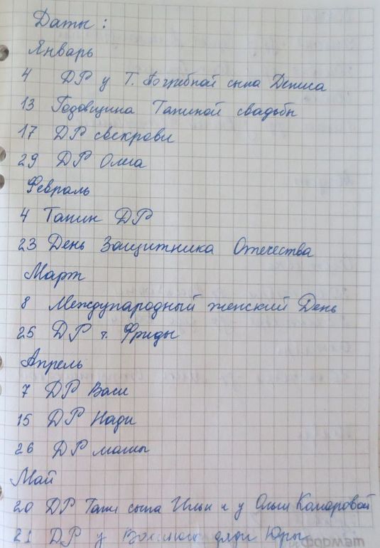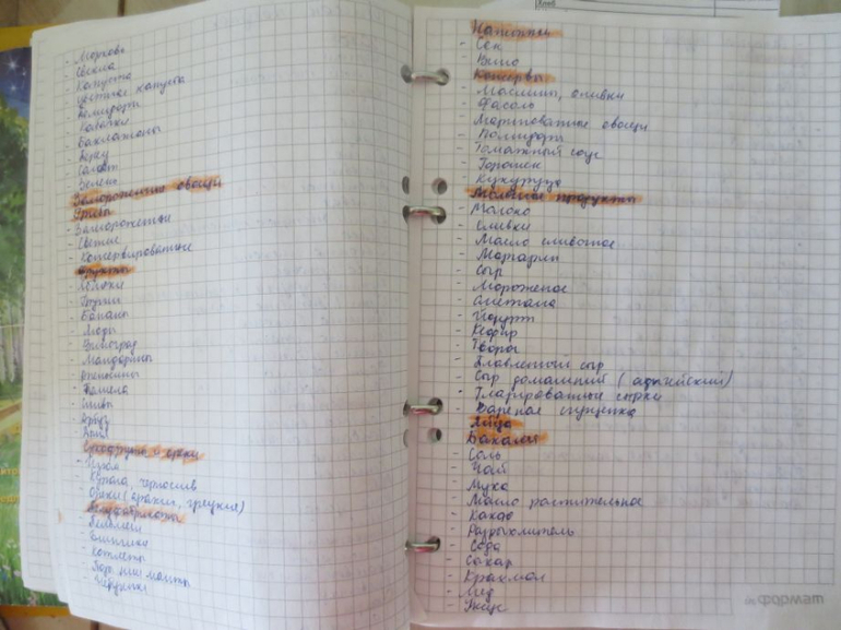 Далее огромный список покупок, который лежит в журнале также в распечатанном виде: