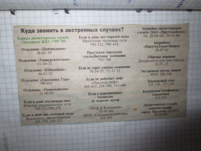 Список телефонов экстренных служб я вырезала из местной газеты: