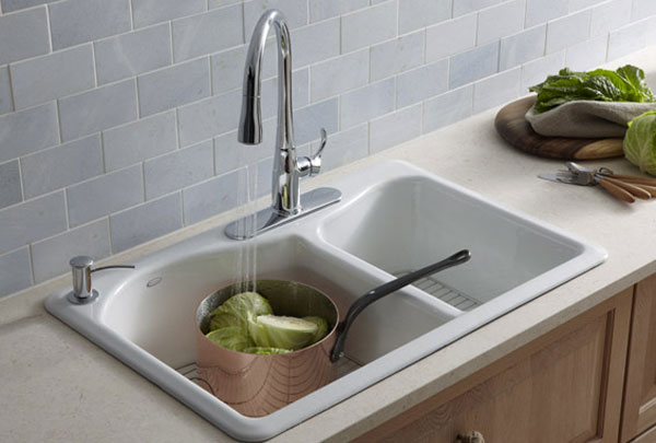 - Теперь берем обычную губку и обычное средство, намыливаем ее и снова натираем всю раковину. Это нужно для того, чтобы смыть остатки прежнего средства, ведь мы ставим в раковину посуду, в том числе детскую, кладем овощи и фрукты. Чтобы ничего случайно не попало в еду, промываем раковину еще раз. Теперь не нужно выдерживать 15 минут. Просто смываем водой.