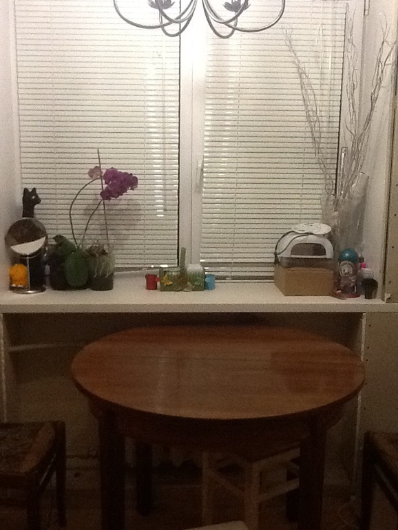 это у меня еще и рабочее место домашнее, поэтому коробочки и лампа пока тут живут. Но в процессе изготовления находится спец-стол, так что в скором времени все это добро переедет в другую комнату)