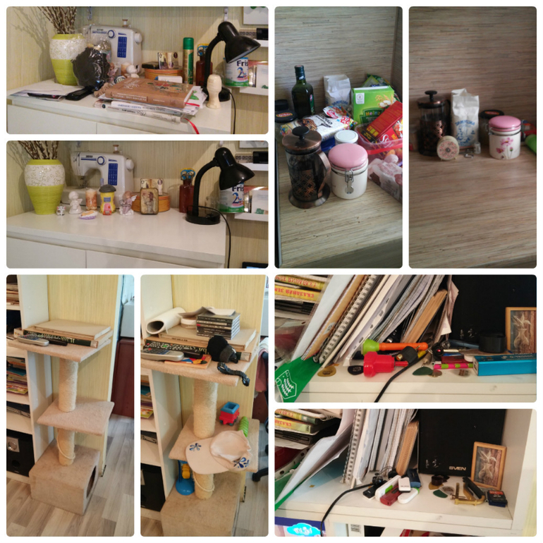 Не все еще конечно в порядке... не нравится мне как выглядит белая полка с флешками, я на ней разбирала, и вообще-то это полка для документов, а сейчас там какие-то блокнотики-тетрадочки, даже какие-то диски... успела пока только вытряхнуть оттуда чеки и мелкие всякие мужнины вещи. Буду разбирать как хламник)