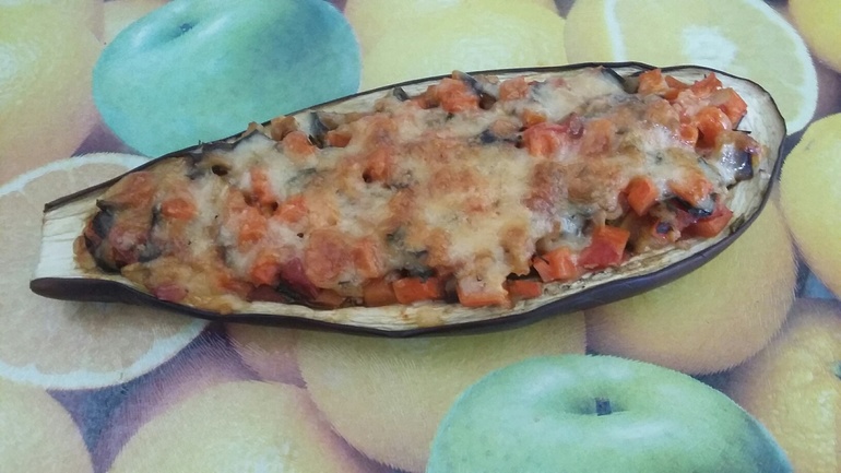 Итого что мы имеем: 2 лодочки, 5 рулетов и 2 ст л с горкой тушеных овощей. Себестоимость примерно 200 рэ (70 руб. баклажаны, 30 Альмета, 20 помидор, 40 -кусочек сыра в 40-50 гр, остальные 40 руб. всего остального - морковка 100 гр, 1 грецкий орешек, веточка петрушки, 10 - 15 гр. кедровых, чуть-чуть масла, пол головки чеснока) Этого всего хватит: