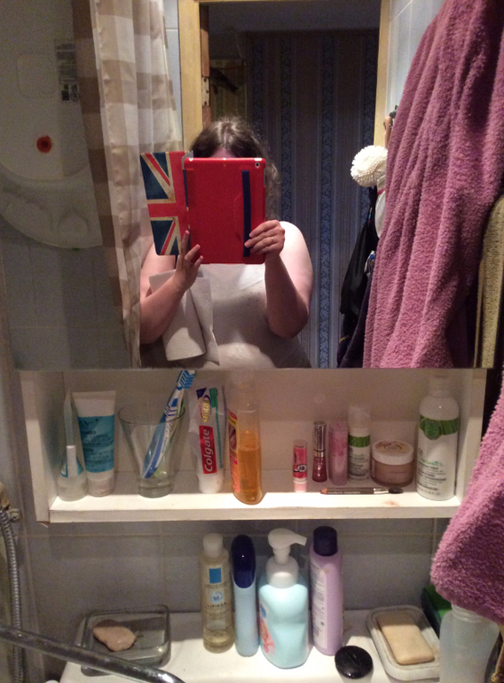18:05 решила начать со шкафчика, помыла зеркало, полочку, разобрала бутылки сверху. Еще помыла мыльницу :)