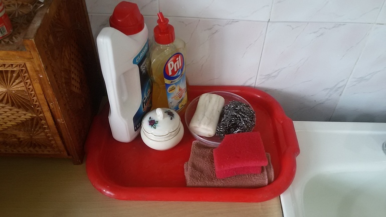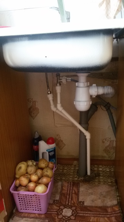 Как было бы не странно, но отбеливатель действительно отбелил ее! Вымыв ее окончательно, я засомневалась: это вообще моя раковина - нет? Она стала отдавать голубизной. Дааа, такую ее я никогда не видела. Далее надо было вымыть под раковиной. Там у меня такой бардель, признаться... Пауки покачиваются на альпинистских снаряжениях, мыши прогрызли в полу норку, и шастают, даже не вытирая ноги на входе. Балиин... вот засада! Подавляя тошноту, я выгребла от туда столько! Ууу! Опять же, промыла всё с отбеливателем. Я вычистила там, где даже никогда бы не подумала чистить! И еще у меня засорена канализационная труба. Вода вечно стоит в раковине, как наглый гость, никуда не собираясь уходить. Сходила в огород за веточкой, открутила сантехнику и стала выгребать из трубы прелести средневековых улиц. С выпученными глазами и открытым как у рыбы ртом, я терпеливо ковыряла в трубах веточкой. Запах стоял невероятный... потом для пущего эффекта засыпала соды и залила уксусом. После этих процедур вода стала уходить не задерживаясь потом еще раз окончательно отмыла раковину, и вот результат:
