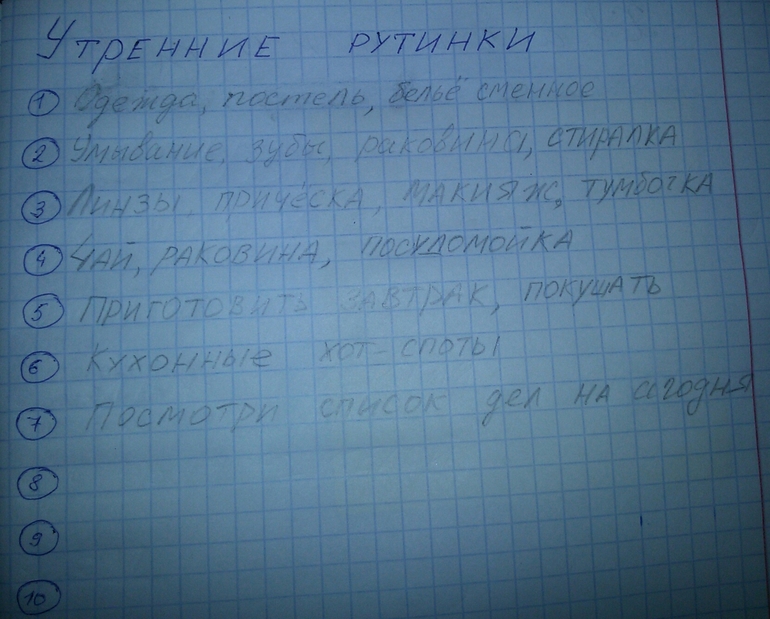 5. Утренние рутинки сделаны. Обед сварен, посуда убрана, в магазин съездили.