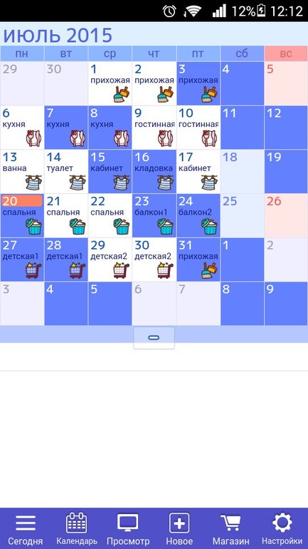 Занесла все зоны в свой календарь на телефоне, синим цветом выделены рабочие смены мужа, он работает 2/2, соответственно в эти дни его дома нет, и я подстраиваюсь под его график.