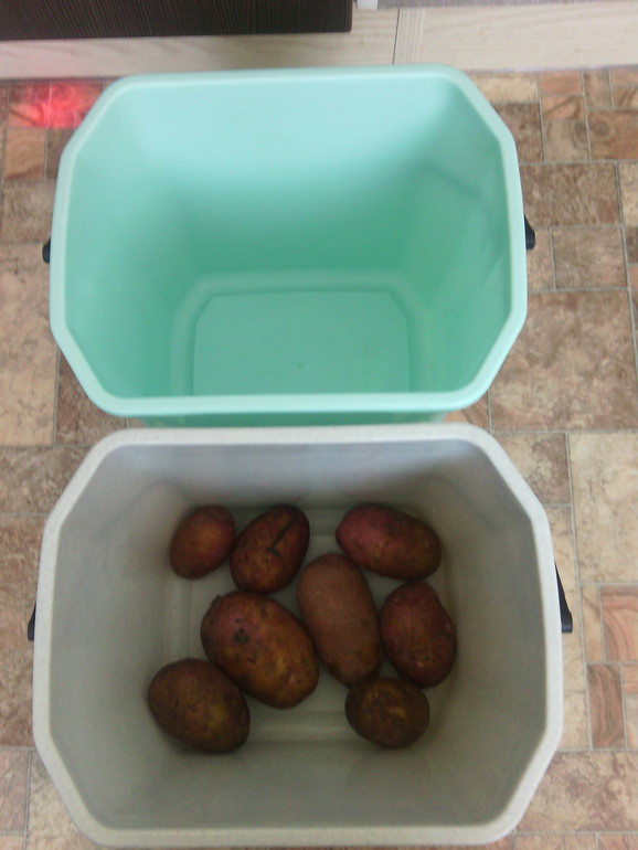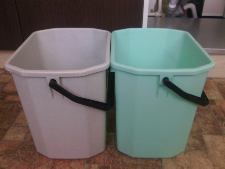 Итак, два одинаковых ведра - одно для мусора, второе для картошки. Есть у меня небольшой "пунктик" - всю картошку сначала мою, а потом уже перекладываю в это ведро.